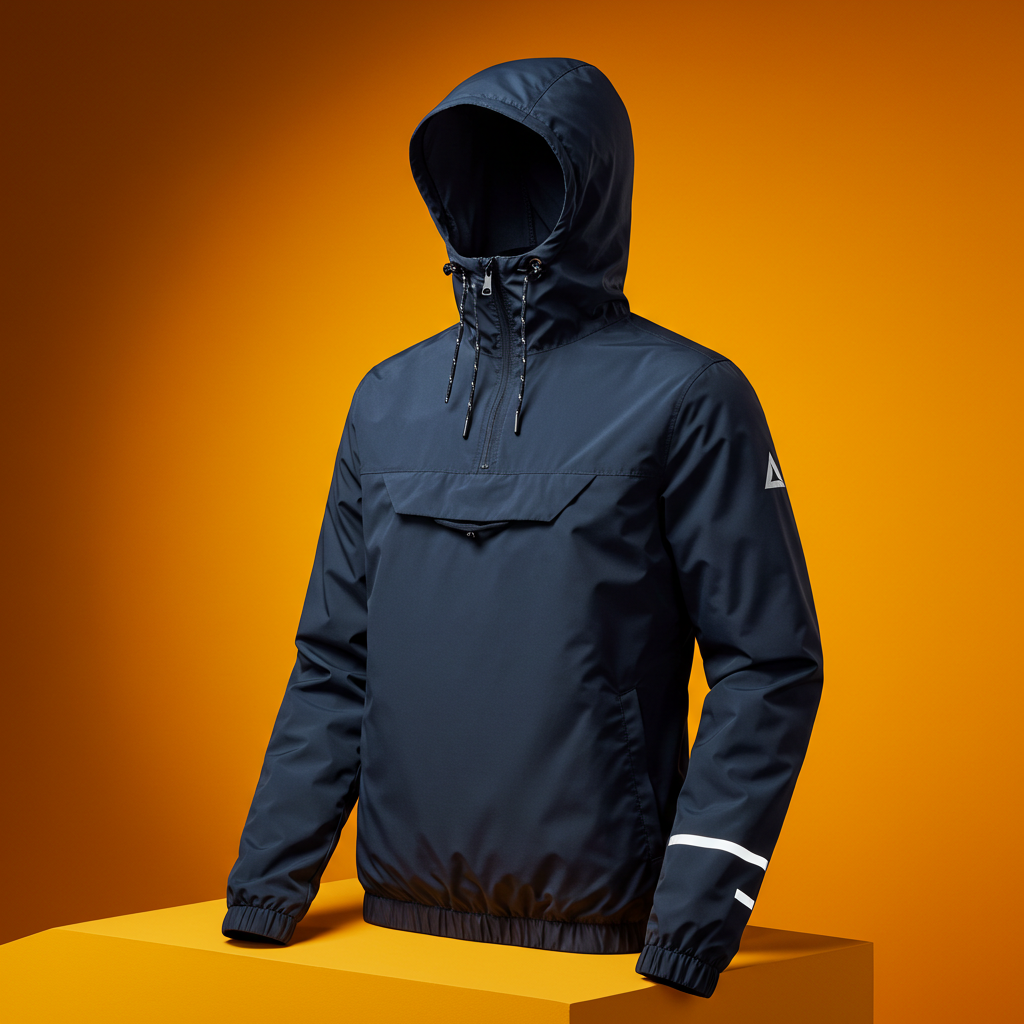 🧥 ويندبريكر رياضي أزرق كحلي | قبعة مدمجة | خفيف ومضاد للرياح | للجري والرياضة ⚡