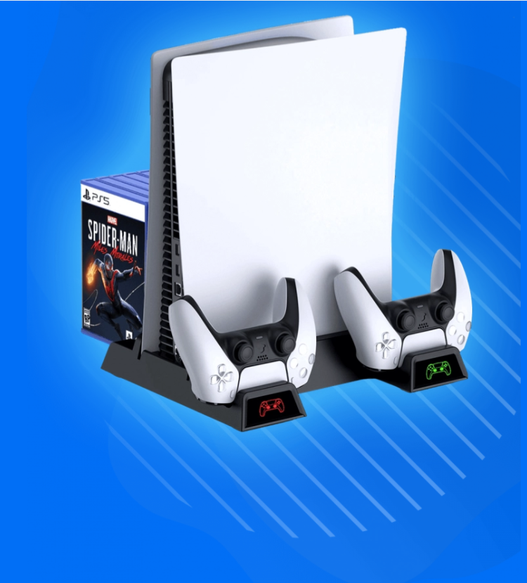 قاعدة مصممة خصيصًا لجهاز بلايستيشن 5، توفر دعمًا قويًا سواء في الوضع الرأسي أو الأفقي، مع تحسين التهوية والحفاظ على جهازك آمنًا ومنظمًا.